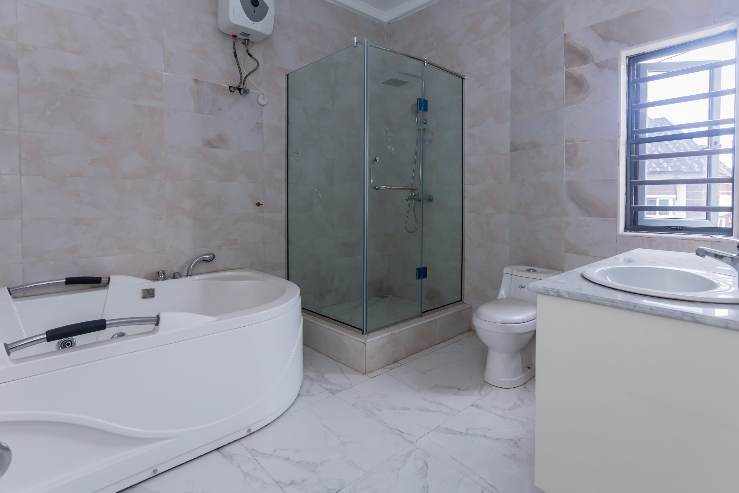 5 Beds . 5 Baths . 6 Toilets . Swimming Pool . Rooftop Lounge . Jacuzzi . BQ . Fully Equipped Kitchen . Ample Parking space